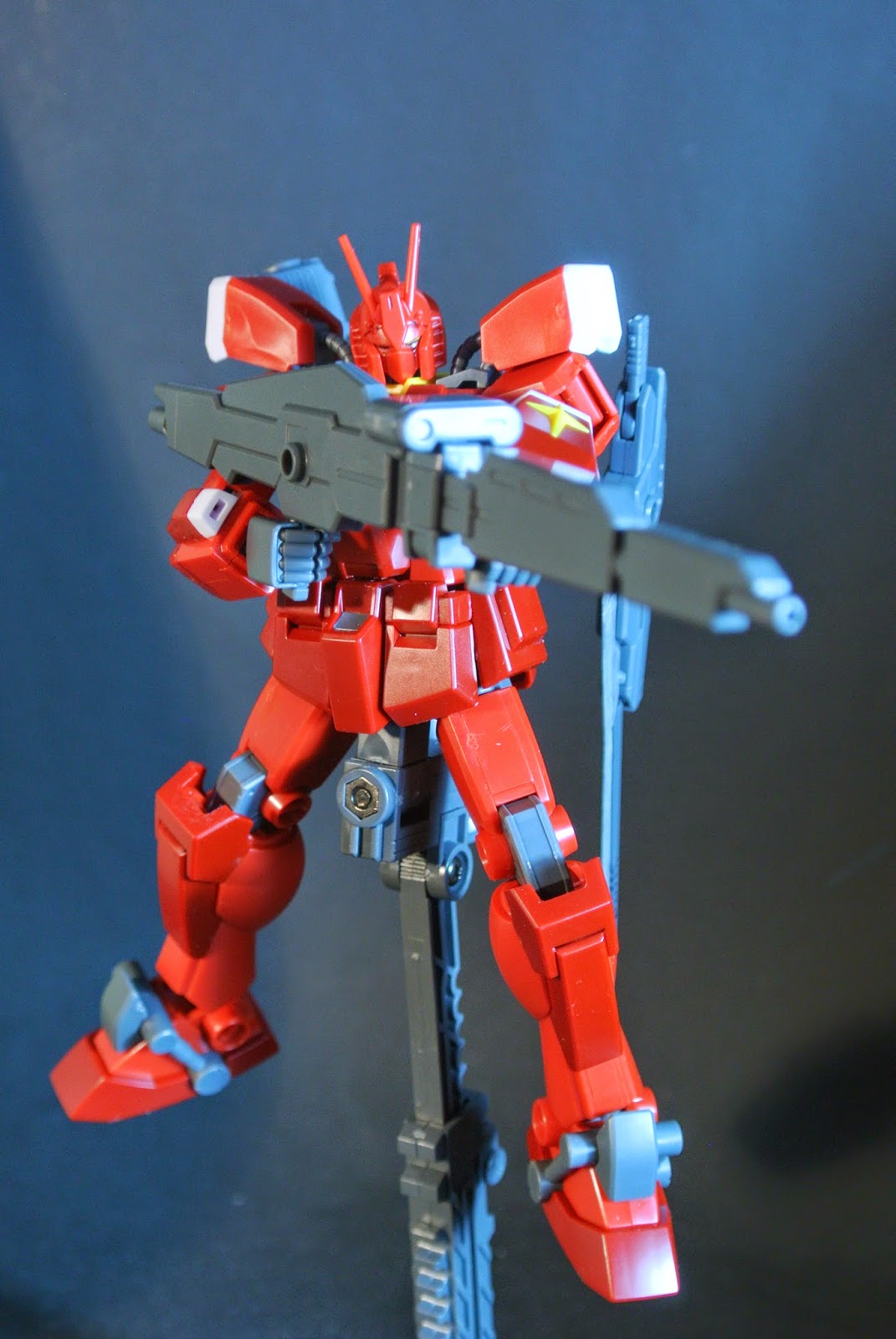This kit is mostly in red, but does not suffer from a lack of color separation. The deep reds, whites and yellows really makes this kit look great even if its only mostly red. This kit doesn't rely on seals to create detail. The amount of weapons it comes with is superb, and it looks great holding each weapon. The kit provides a variety of play options.